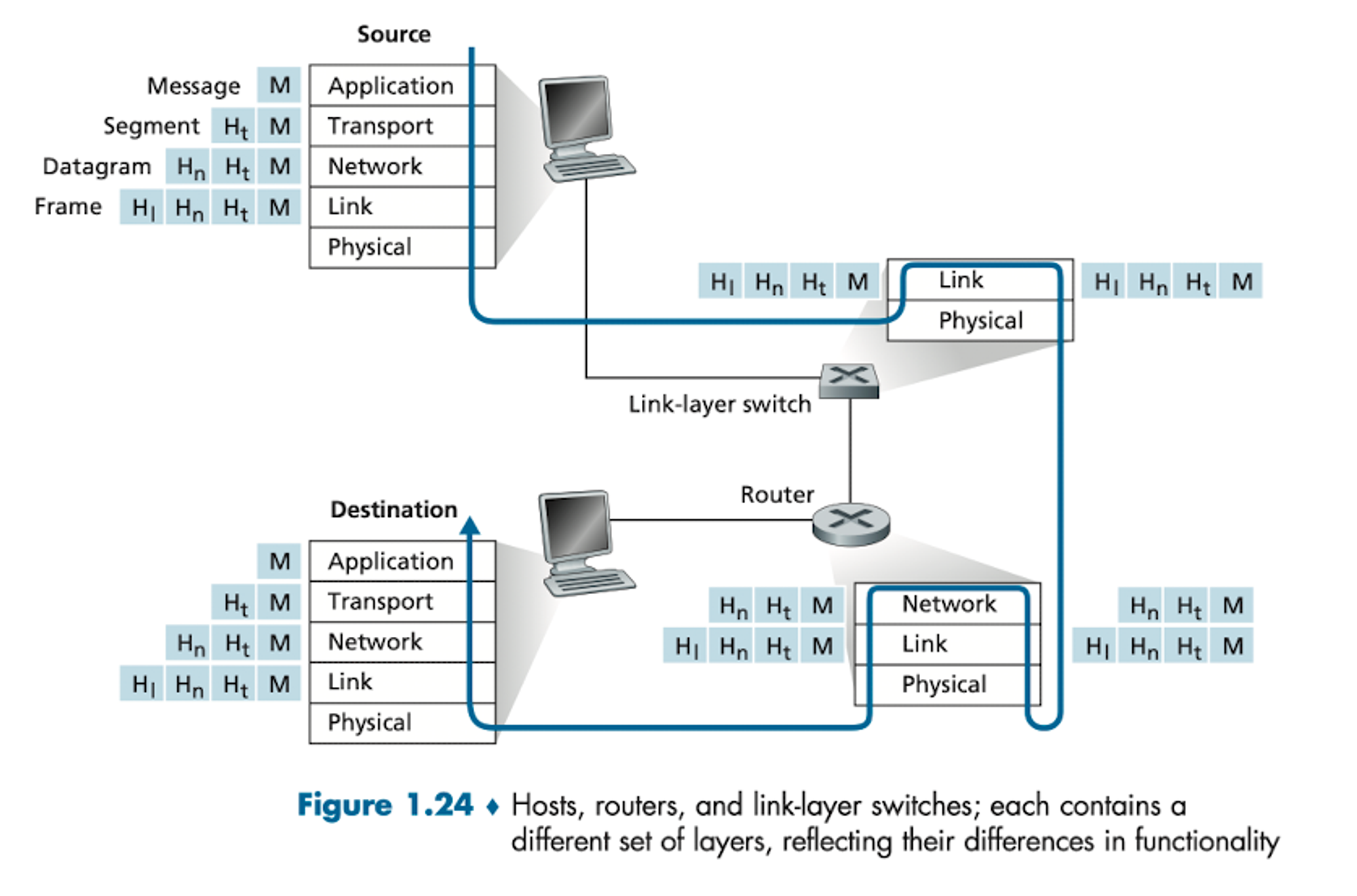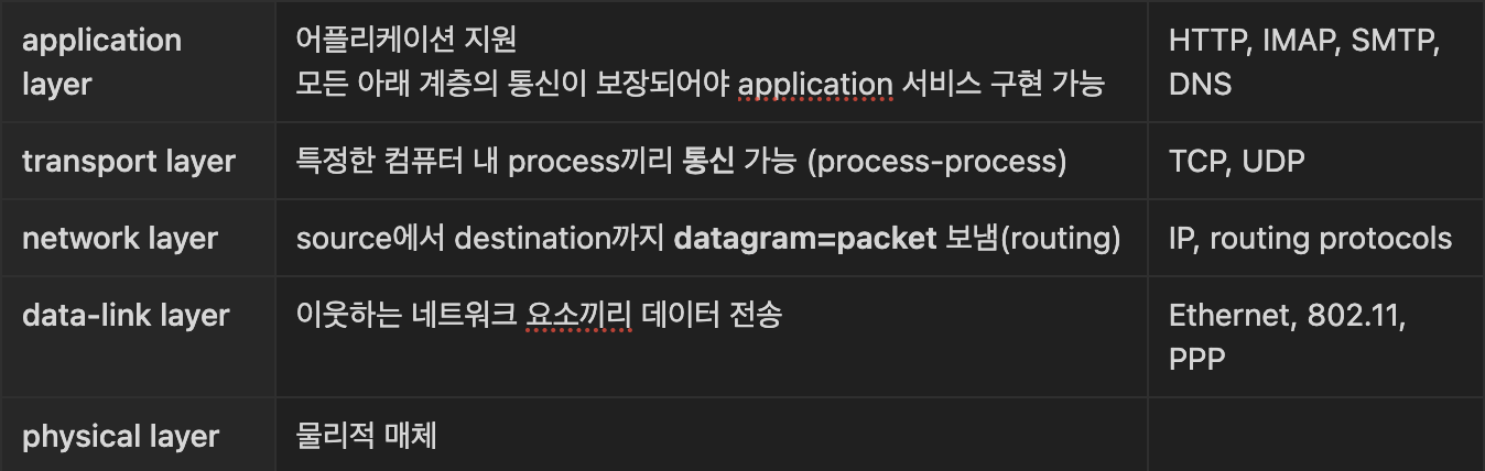 - source 에서 destination까지 모든 device에 모든 계층이 구현될 필요 X